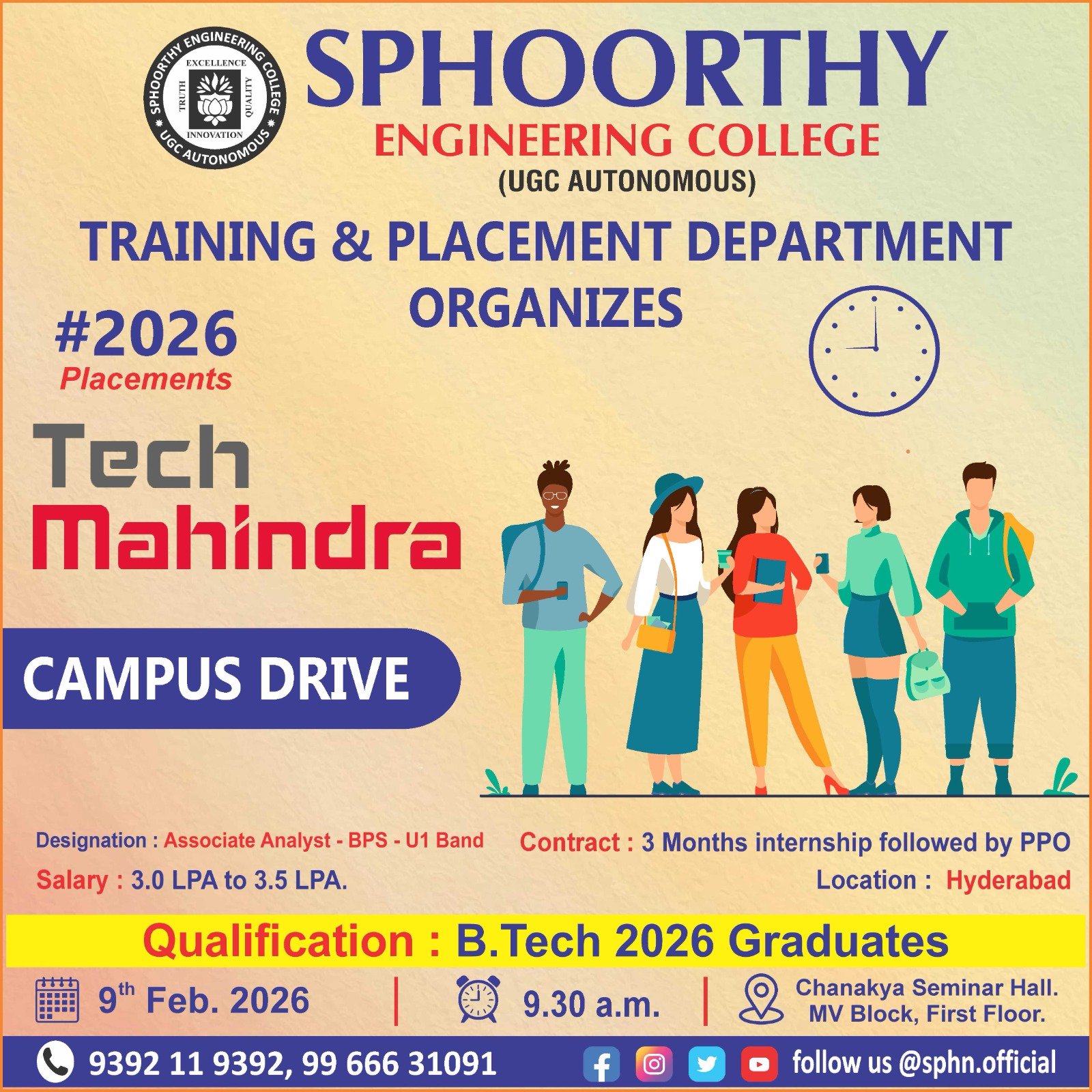 "TECH MAHINDRA" On-campus drive for Final Year students and 2023 passed out on 19.01.23