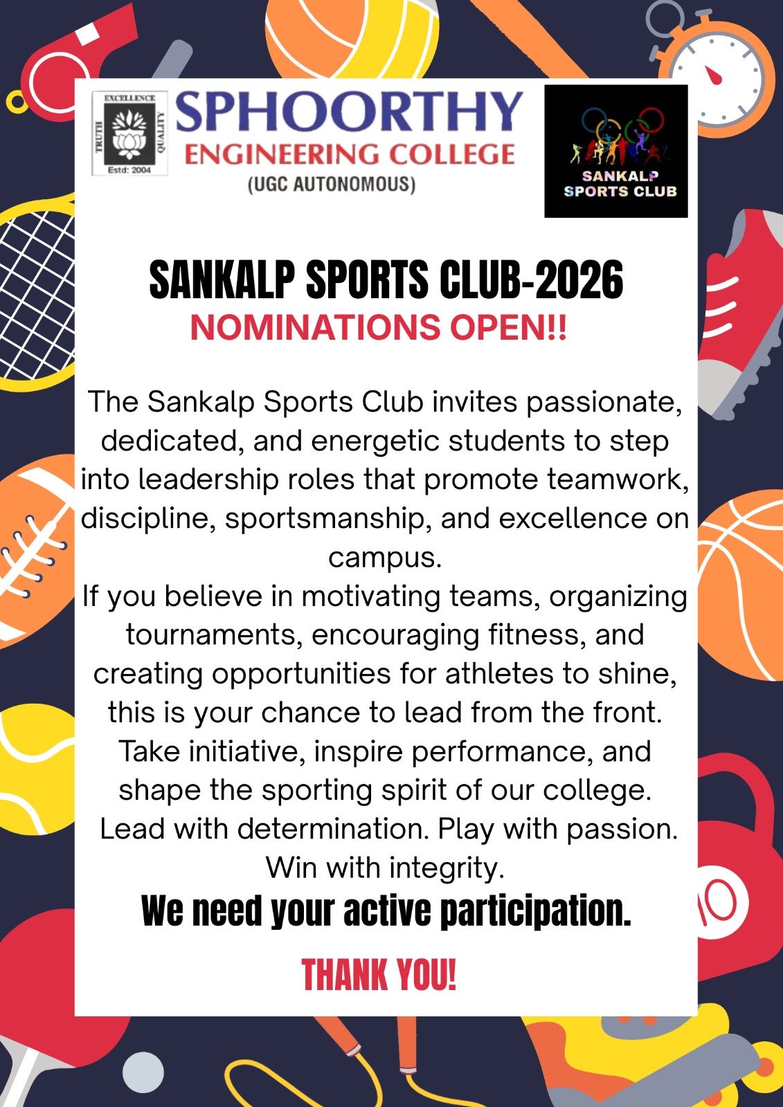 To encourage the students to be a part of games and sports to improve all-round personality.