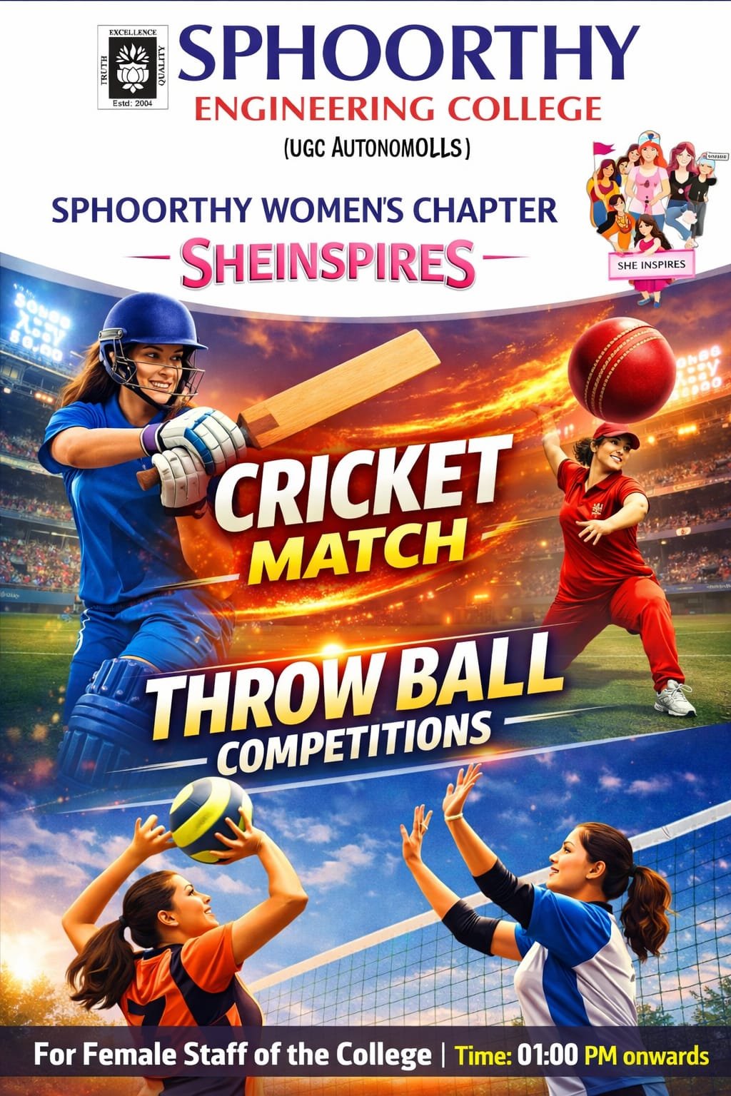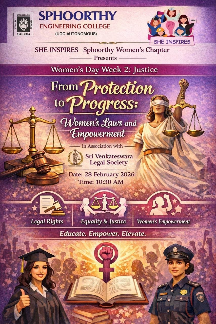 1. The SHE INSPIRES women’s Club consists of a creative group of students on campus and committed to learn about to inspire women through guest lectures, seminars, awareness programs, webinars and other welfare activities.